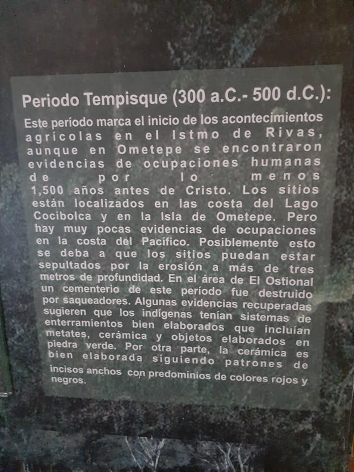 During the ninth century, in the Isthmus of Rivas and most of the Pacific of Nicaragua, changes in the parts of culture were observed. The monumental sculpture that is characterized by the representation of characters adorned with a headdress in the form of portentous animals, such as birds, felines, and reptiles begin to develop. On the other hand, ceramic traditions change strongly reflecting some Mesoamerican gods such as Tlaloc, Quetzalcoalt, and the Wind God. It has been considered that these changes are due to the arrival of the Chorotegas groups from Chiapas, Mexico. Although food patterns continue to be similar to previous periods, large sites with concheros are found in the Ostional area, which implies greater exploitation of fishery resources in the area.